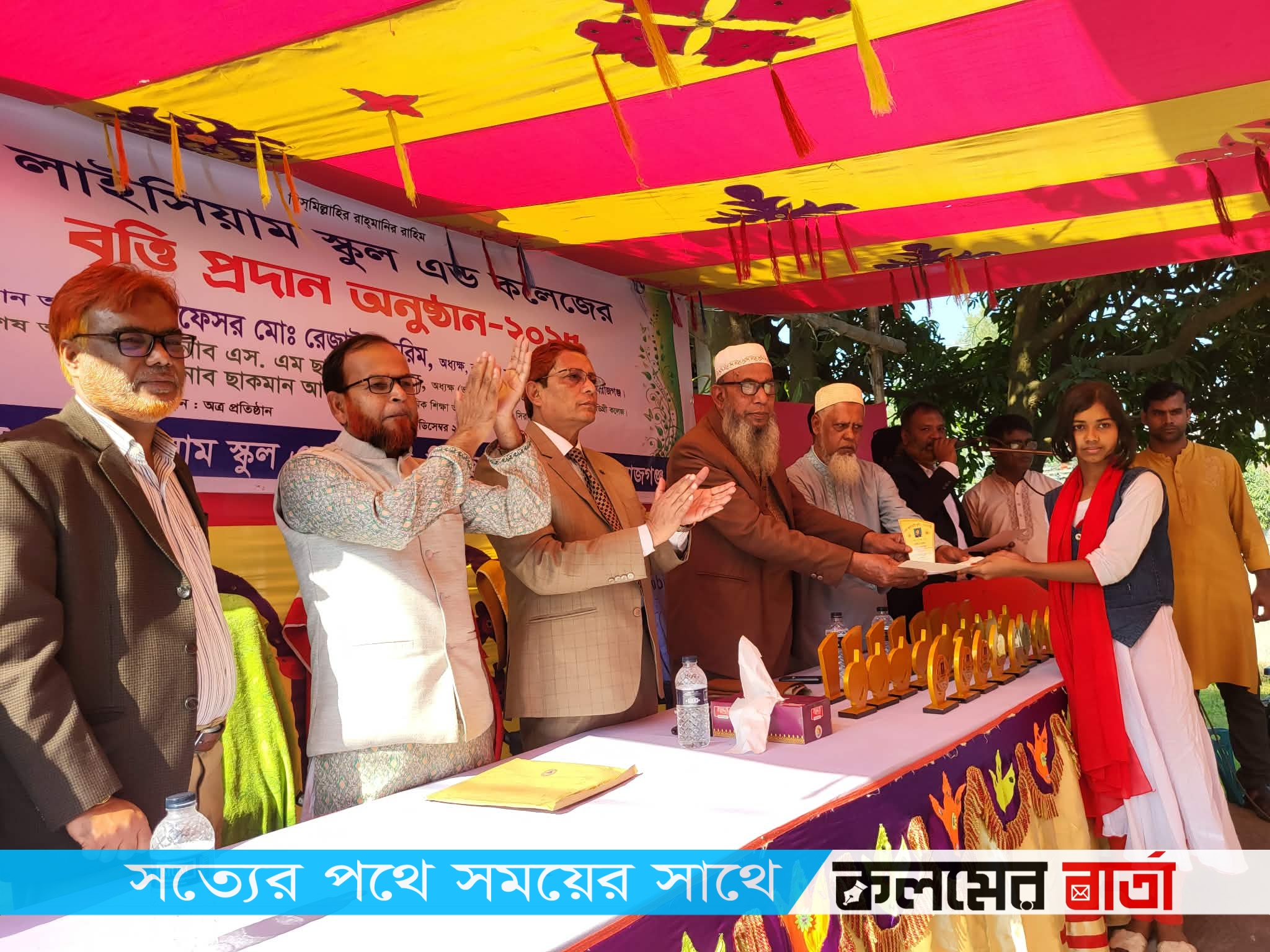 বুধবার (১৭ ডিসেম্বর) উপজেলার সিমান্তবাজারে লাইসিয়াম স্কুল এন্ড কলেজ প্রাঙ্গণে আয়োজিত বৃত্তি প্রদান অনুষ্ঠানে প্রধান অতিথি হিসেবে উপস্থিত ছিলেন, কাজিপুর সরকারি মনসুর আলী কলেজে অধ্যক্ষ রেজাউল করিম। বিশেষ অতিথি হিসেবে উপস্থিত ছিলেন, আর আই এম ডিগ্রি কলেজের অধ্যক্ষ (ভার:) এস এম ছাইদুল ইসলাম। সভাপতিত্ব করেন প্রতিষ্ঠানের অধ্যক্ষ জনাব কোরবান আলী। এছাড়াও বক্তব্য রাখেন আব্দুল হালিম, আব্দুল মোমিন, আব্দুস সামাদ, ফরিদুল ইসলাম, শাহিন রেজা , ডা: ফরিদুল ইসলাম প্রমুখ। কৃতী শিক্ষার্থীদের মাঝে পুরস্কার বিতরণ করা হয়। অনুষ্ঠান উপস্থাপন করেন রোকনুজ্জান রাসেল ও জাহাঙ্গীর আলম। প্রতিষ্ঠানের পরিচালক আশরাফুল আলম তার প্রতিষ্ঠান সম্পর্কে ভবিষ্যৎ পরিকল্পনা তুলে ধরেন। মেধা বৃত্তি ছাড়াও সনদ ও ক্রেস্ট প্রদান করা হয়।