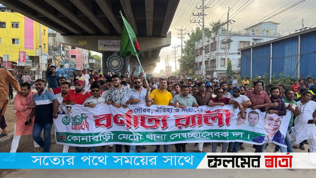 কোনাবাড়িতে সেচ্ছাসেবক দলের ৪৫তম প্রতিষ্ঠাবার্ষিকী উপলক্ষে র্যালী অনুষ্ঠিত