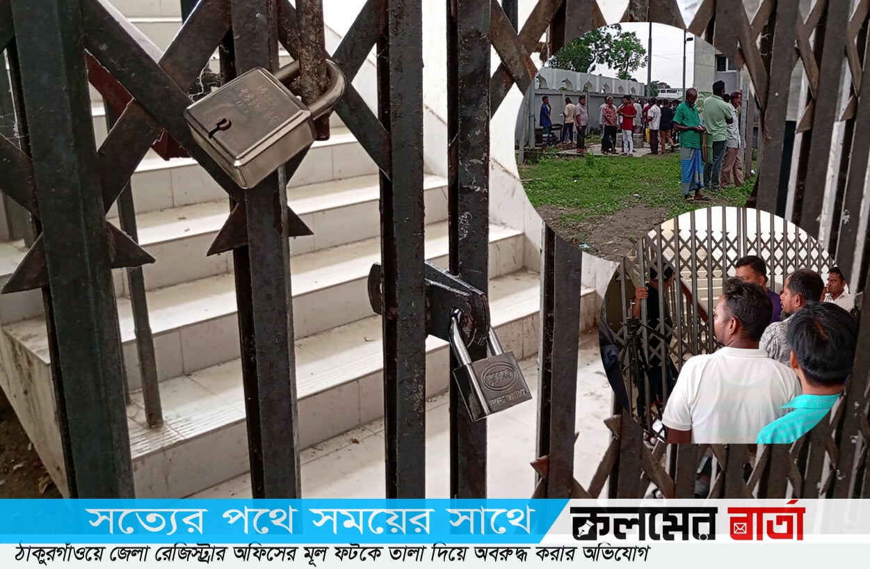 মো আসাদুজ্জামান ঠাকুরগাঁও সংবাদদাতা: ঠাকুরগাঁও জেলা শহরের রেজিস্ট্রি অফিস চত্বরে দলিল লেখক কল্যাণ সমবায় সমিতির স্থাপনাকে কেন্দ্র করে জেলা রেজিস্ট্রার অফিসের মূল ফটকে তালা দিয়ে অবরুদ্ধ করে রাখার অভিযোগ উঠেছে জেলা দলিল লেখক সমিতির বিরুদ্ধে।