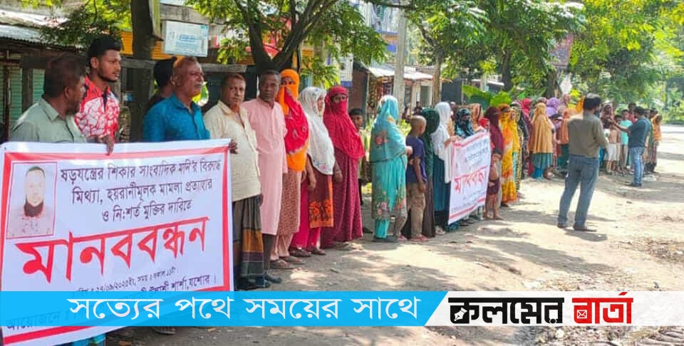 শার্শায় সাংবাদিকের বিরুদ্ধে মিথ্যা মামলা প্রত্যাহার ও মুক্তির দাবিতে মানববন্ধন