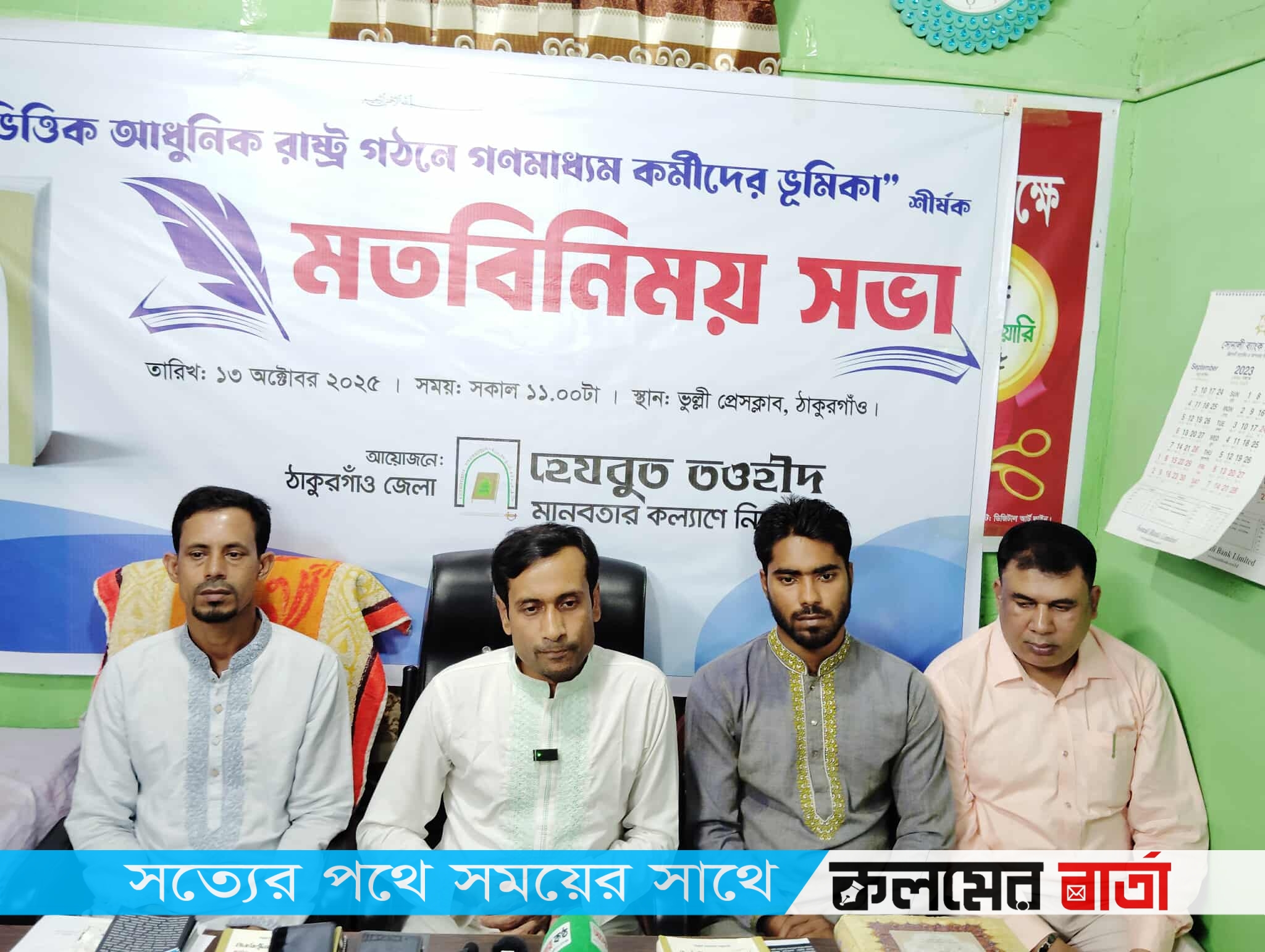 ঠাকুরগাঁও জেলা হেযবুত তওহীদের আয়োজনে সোমবার (১৩ অক্টোবর) স্থানীয় গণমাধ্যম কর্মীদের সঙ্গে একটি গোলটেবিল বৈঠকের আয়োজন করেছে।